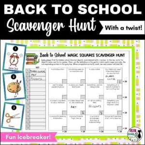 If you’d rather skip the prep, try this ready-to-use Back to School Scavenger Hunt with a twist — it’s also a magic squares puzzle! Students explore the classroom, find items, and solve the puzzle as they go, making it both interactive and brain-boosting.